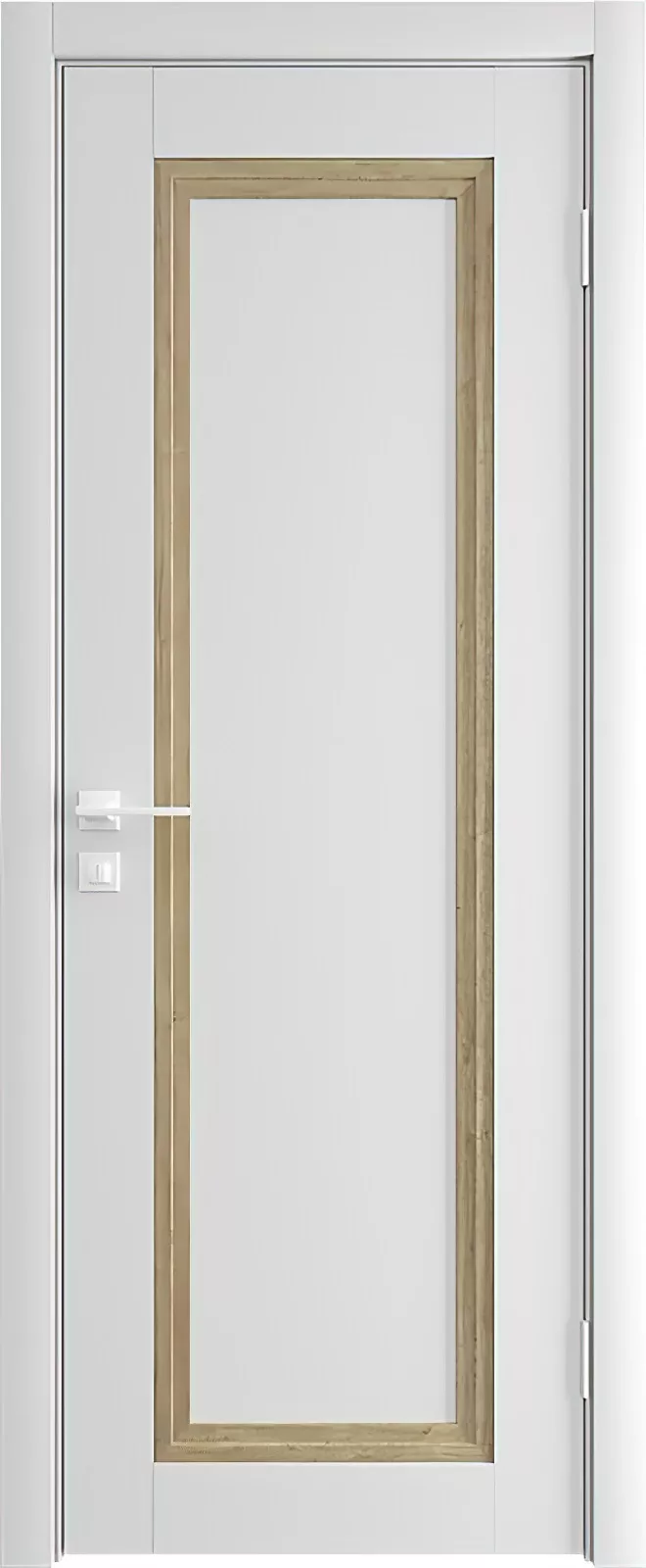 Древесная рама окантовывает филенки и стекла по периметру, подчеркивая геометрию двери. Светлый сатинат с гравировкой отлично дополняет остекленные модели, которые выступают компаньонами глухих дверей и подойдут для установки в гостиную или на кухне, привнося в помещение больше света.